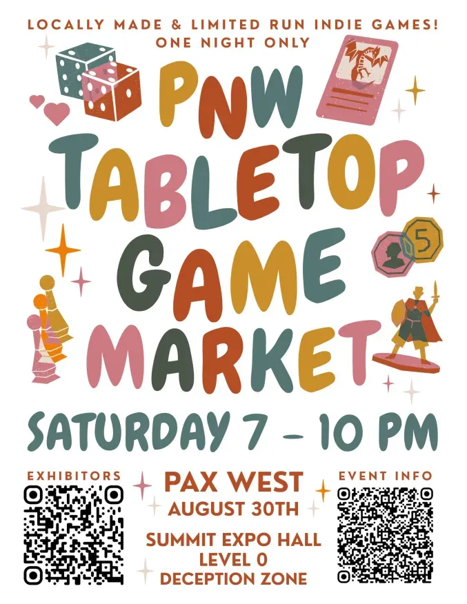 On August 30th, 2025 I had a booth at the PAX West PNW Tabletop Game Market, where I sold Into Avalon.